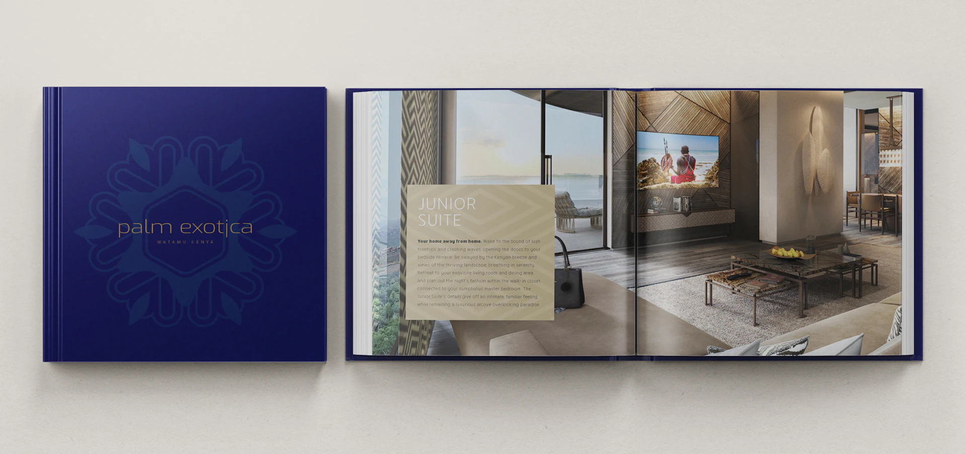 Palm Exotjca is a luxury residence collection and world-class hotel currently under development in Watamu, Kenya. To launch its efforts and unveil Palm Exotjca, Smarthinking Inc. conceptualized and created a brand identity for the new mixed-use project, which will serve as a gateway to coastal Africa overlooking the topaz-colored shores of the Indian Ocean.
