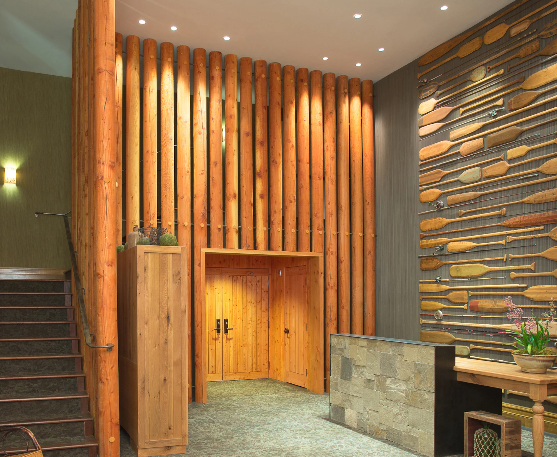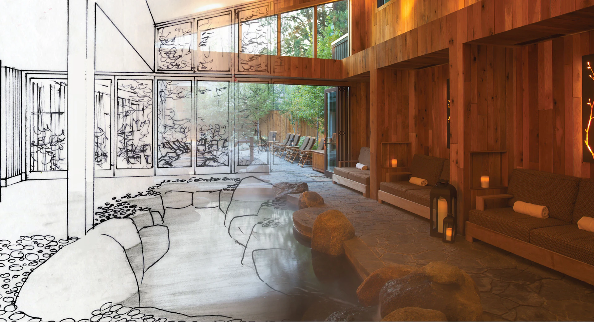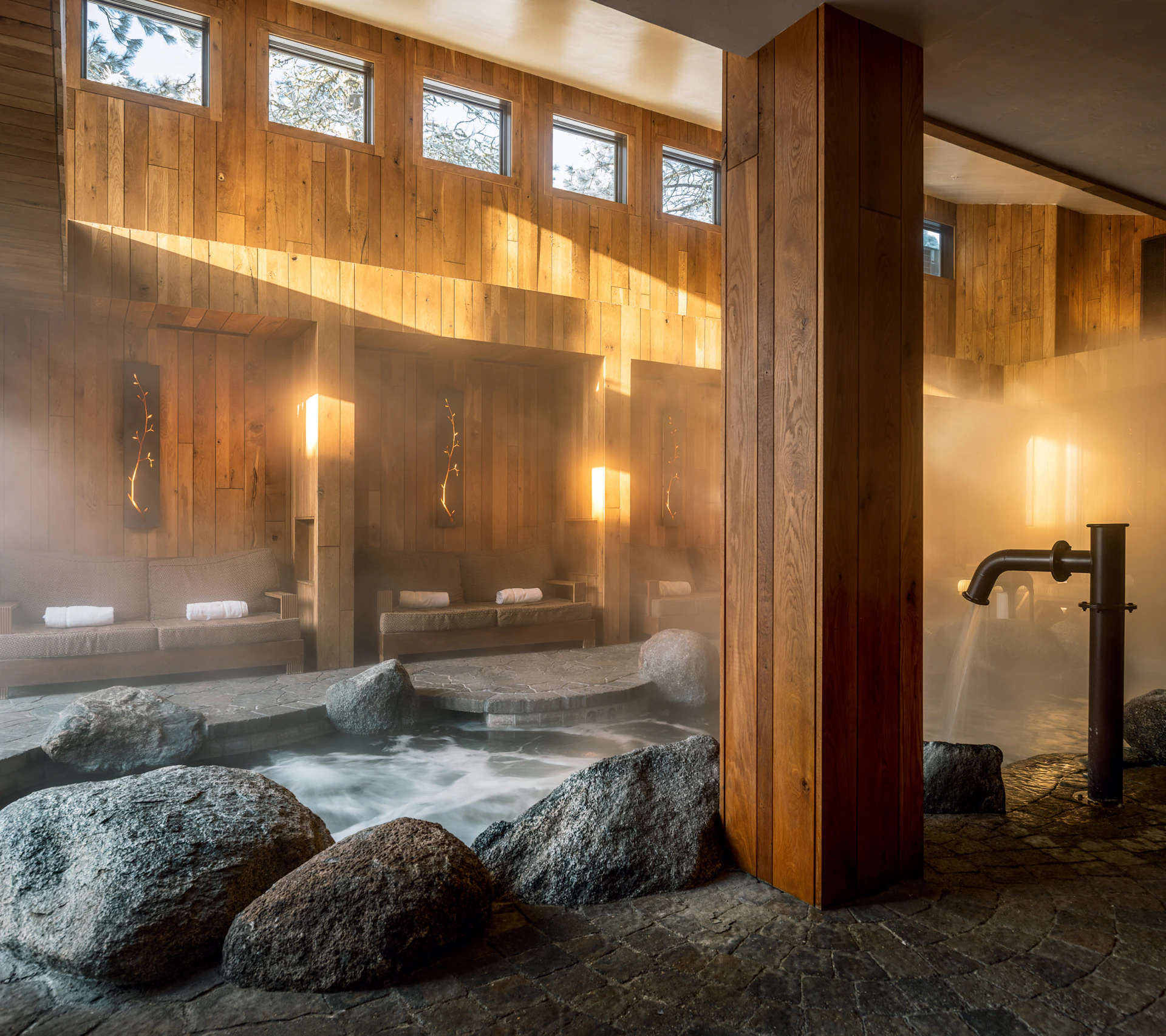 We conceptualized, designed, and built this dramatic, world-class spa for Shore Lodge in the charming town of McCall, Idaho. Every detail was crafted to follow our vision for this luxury retreat. From the interiors to the treatment names to the staff selection and training, the curated experience is authentically The Cove. Features like the 60+ floor-to-ceiling regional Douglas fir logs surrounding the lobby and the two handcrafted immersion pools built out of 68,000 pounds of Idaho granite ensure that this is a spa like no other.