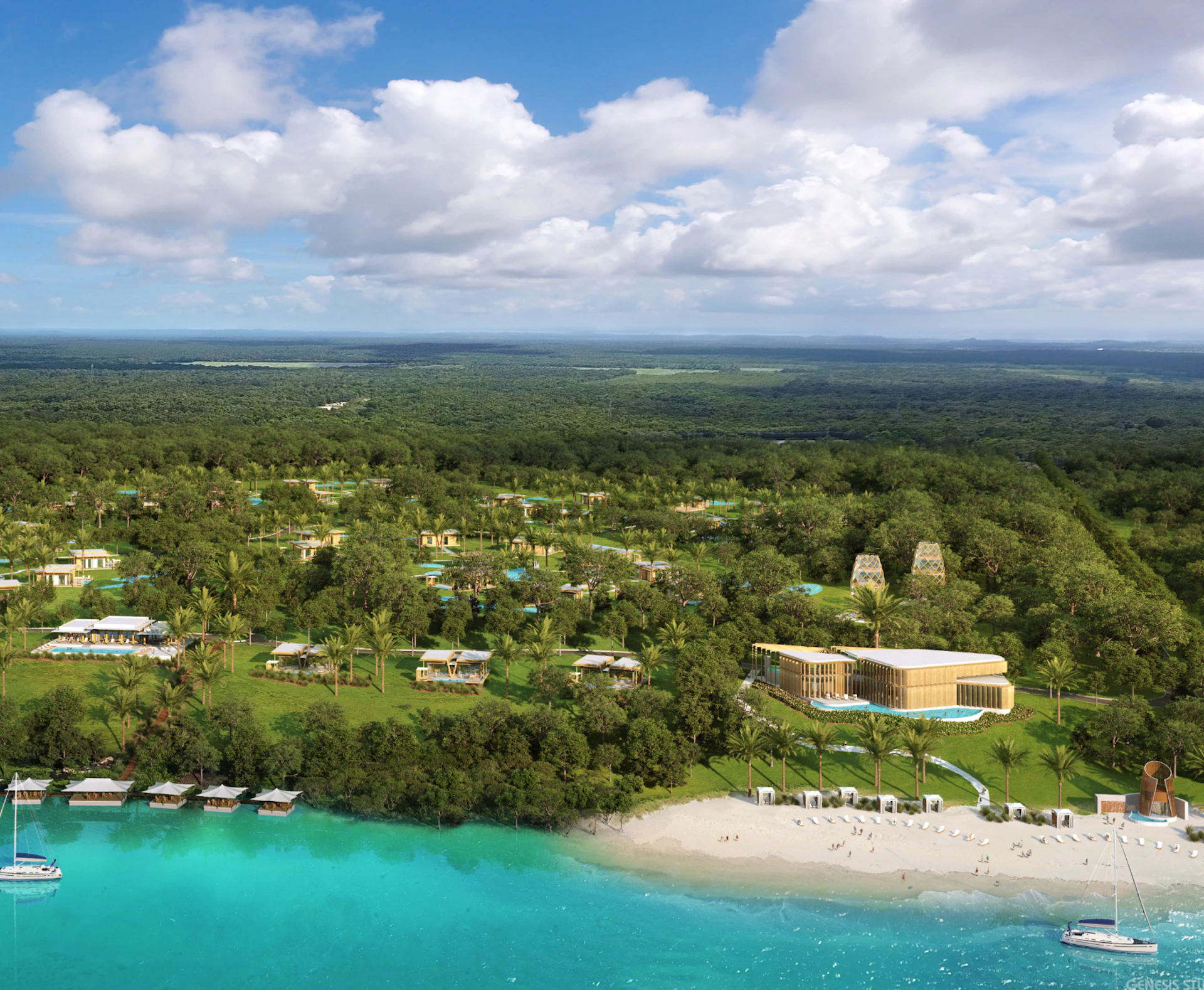 Salone del Mobile is the global benchmark event for the furnishing and design sector, welcoming over 370,000 professional visitors from 188 countries and 5,000 national and international journalists each year. Naturally, it was the event to unveil the concept for an ambitious new resort coming to the jungles of the Yucatan Peninsula. The developer approached Smarthinking Inc. for help in executing that task. The challenge? Conceptualizing and creating a brand for an unparalleled resort that elegantly harnessed the elements of its location in Bacalar, Mexico, a hidden oasis brimming with ancient crystalline waters, and designing an impactful lookbook to launch at Salone, making the announcement to the world — all in 30 days.
